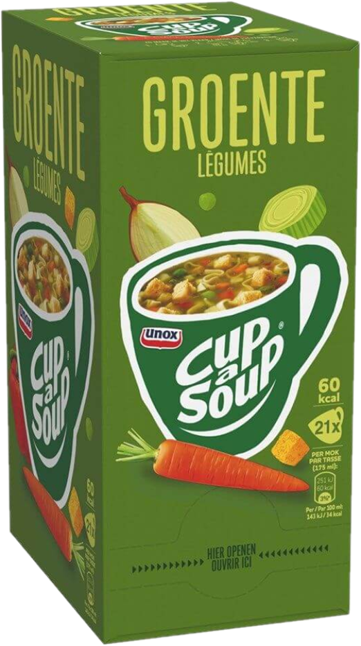 Cup-a-Soup Groente: een snelle, hartige opkikker die je weer energie geeft om door te gaan! Daarnaast bevat deze Cup-a-Soup Groente geen kunstmatige kleurstoffen, conserveermiddelen of toegevoegde smaakversterkers. Deze variant is ook geschikt voor vegetariërs en veganisten. Een zakje van deze heerlijke Cup-a-Soup Groente bevat 60 calorieën per mok. De Cup-a-Soup Groente is eenvoudig en snel te bereiden: doe de inhoud van het zakje in jouw favoriete mok en giet er 175 ml kokend water bij. Daarna eventjes roeren, 1 minuutje wachten en klaar, eet smakelijk!!