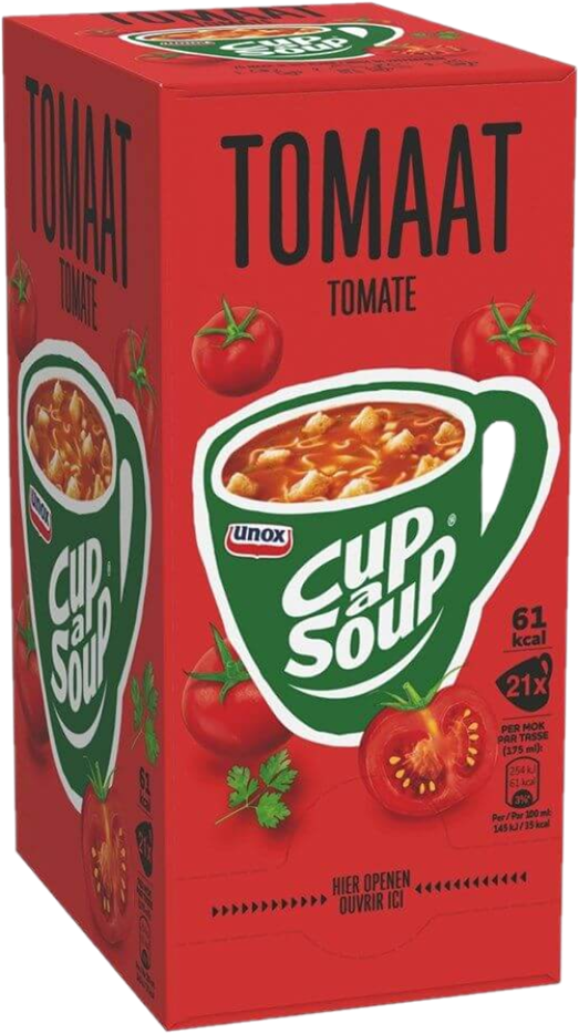 Cup-a-Soup Tomaat: een snelle, hartige opkikker die je weer energie geeft om door te gaan! Daarnaast bevat deze Cup-a-Soup Tomaat geen kunstmatige kleurstoffen, conserveermiddelen of toegevoegde smaakversterkers. Deze variant is ook geschikt voor veganisten. Een zakje van deze heerlijke Cup-a-Soup Tomaat bevat 62 calorieën per mok. De Cup-a-Soup Tomaat is eenvoudig en snel te bereiden: doe de inhoud van het zakje in jouw favoriete mok en giet er 175 ml kokend water bij. Daarna eventjes roeren, 1 minuutje wachten en klaar, eet smakelijk!