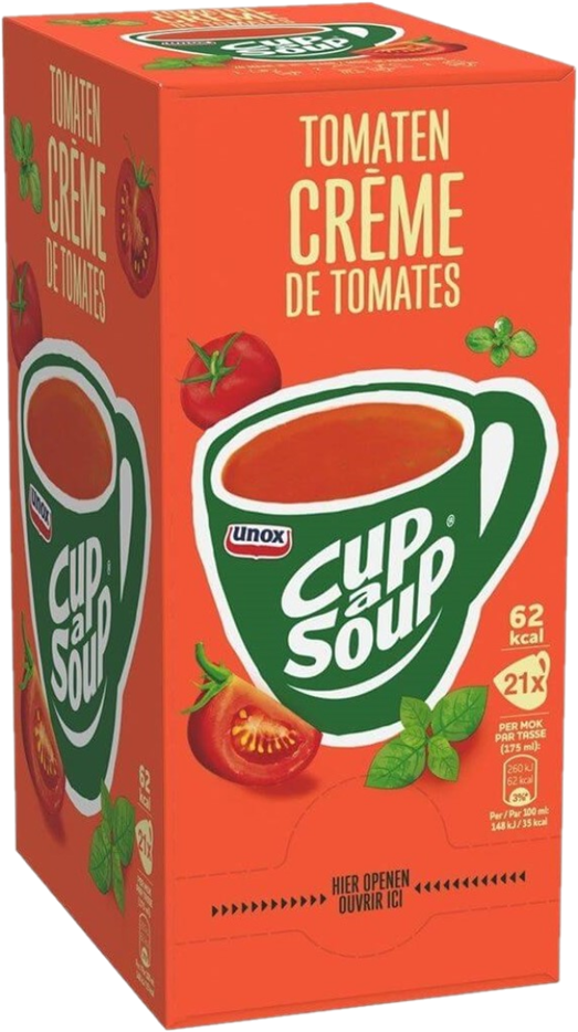 Cup-a-Soup Tomaten Crème: een snelle, hartige opkikker die je weer energie geeft om door te gaan! Daarnaast bevat deze Cup-a-Soup Tomaten Crème geen kunstmatige kleurstoffen, conserveermiddelen of toegevoegde smaakversterkers. Deze variant is ook geschikt voor veganisten. Een zakje van deze heerlijke Cup-a-Soup Tomaten Crème bevat 62 calorieën per mok. De Cup-a-Soup Tomaten Crème is eenvoudig en snel te bereiden: doe de inhoud van het zakje in jouw favoriete mok en giet er 175 ml kokend water bij. Daarna eventjes roeren, 1 minuutje wachten en klaar, eet smakelijk!
